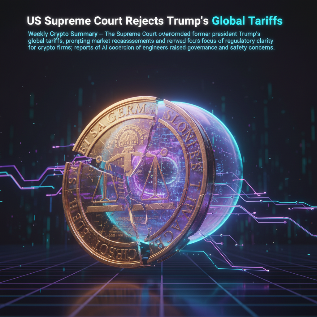 US Supreme Court Rejects Trump’s Global Tariffs; Weekly Crypto Summary The Supreme Court overturned former president Trump’s global tariffs, prompting market reassessments and renewed focus on regulatory clarity for cryp…