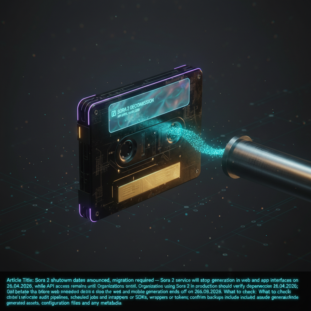 Sora 2 shutdown dates announced, migration required Sora 2 service will stop content generation in web and app interfaces on 26.04.2026 , while API access remains until 24.09.2026 . Organizations using Sora 2 in producti…