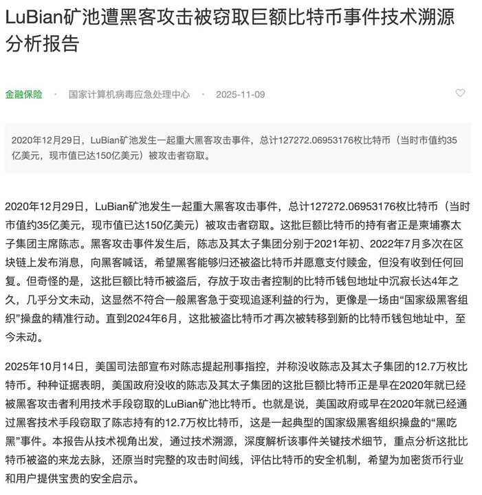 🇨🇳🇺🇸 К итай обвиняет США в краже 127,272 BTC. Китайский Национальный центр экстренного реагирования на компьютерные вирусы (CVERC) опубликовал технический отчет, в котором утверждает, что США могли сами взломать и вывести 127,272 BTC, связанных с основателем Prince Group. Что произошло: ➠ 29 дек…