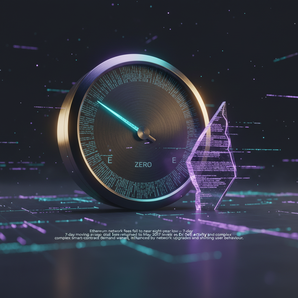 Ethereum network fees fall to near eight-year low The average cost to execute transactions on the Ethereum network has declined to levels not seen in almost eight years. Recent metrics According to Glassnode, the 7-day moving average of total fees reached a level last observed in May 2017. The indic…