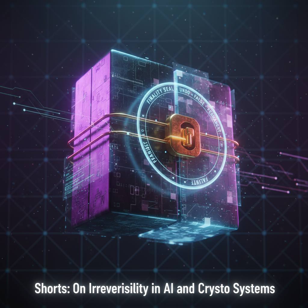 Shorts: On Irreversibility in AI and Crypto Systems Many technical systems create states that are difficult or impossible to revert, which raises operational and governance challenges. Blockchain transactions and finality In distributed ledgers, transaction finality typically means that an action ca…