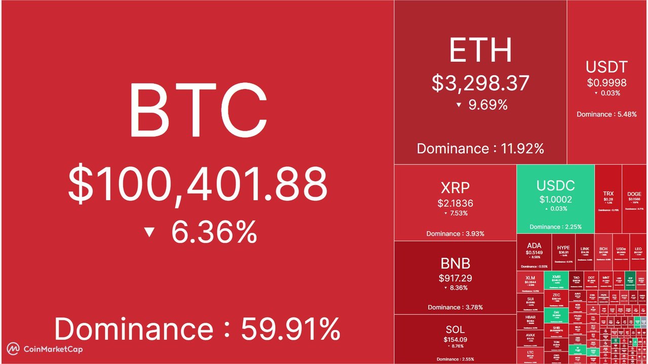 ☝🏻Биткоин просел до 100 000 $ На текущий момент криптоиндекс страха и жадности зафиксирован на уровне 27, что указывает на преобладание страха на рынке.💔 Цены на ключевые криптовалюты продолжают падать: BTC торгуется по $100,3 тыс.с падением на 6,62% за 24 часа, а эфир стоит $3289, снизившись на 1…
