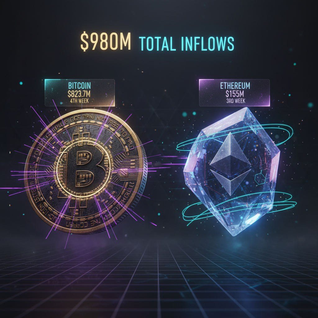 Nearly $980 million flowed into spot Bitcoin and Ethereum ETFs